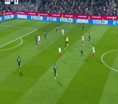 第45分钟,主队凭借欧纳希的射门,取得1比0领先。