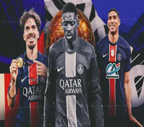 巴黎圣日耳曼(433):舍瓦利耶/阿什拉夫、马尔基尼奥斯、帕乔、努诺-门德斯/若昂-内维斯、维蒂尼亚、法比安-鲁伊斯/杜埃、登贝莱、巴尔科拉