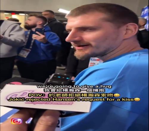 2月16日消息,2月16日,今天NBA全明星正赛结束,世界队以45-48不敌美国队,世界队的中锋约基奇赛后接受了媒体采访,回应了杨瀚森表示要亲吻他的提问。