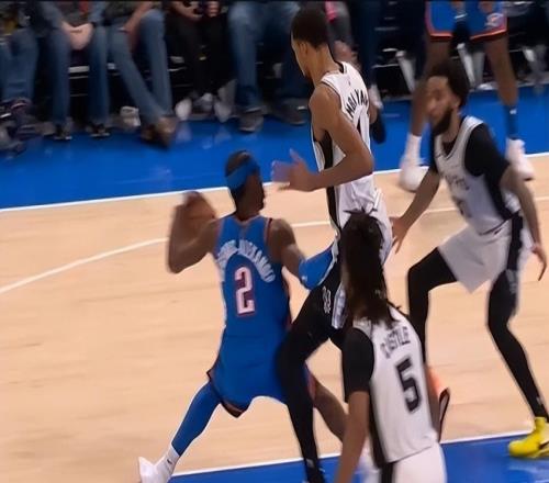 夹腿垫脚撞膝盖,文班被干倒6次!遭遇雷霆武术队,气得扭头就走