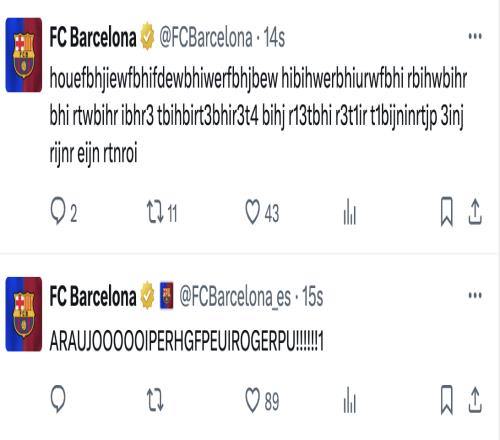 阿劳霍绝杀后,巴萨官方社媒激动到胡言乱语
