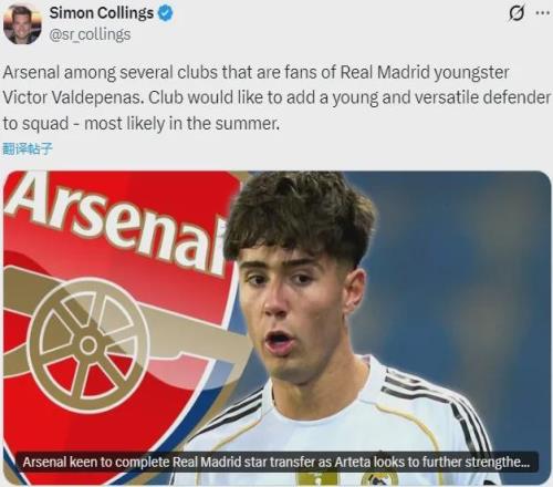跟队:阿森纳或在夏天收购皇马新星!枪手后防两大将仍无法复出 -